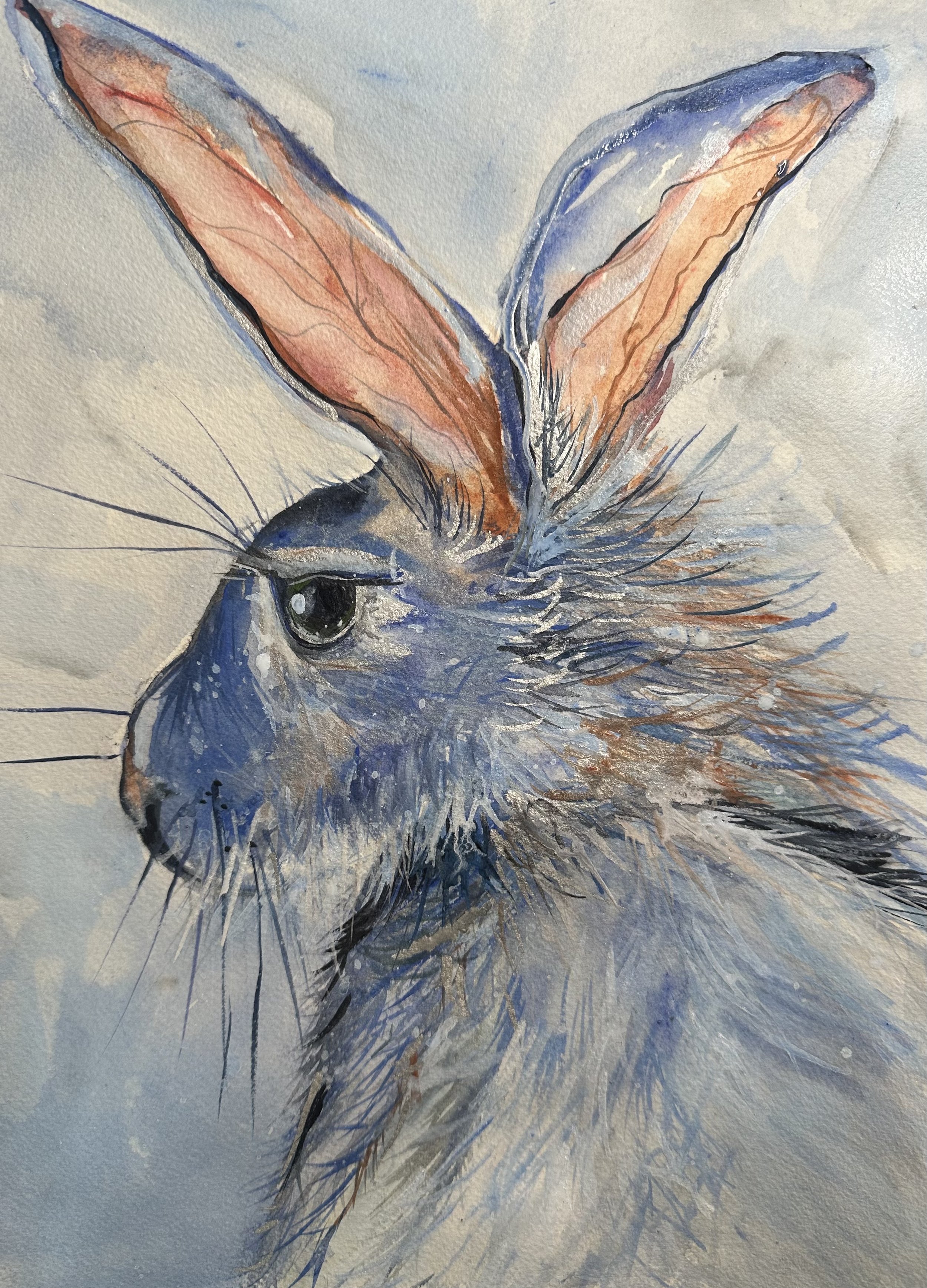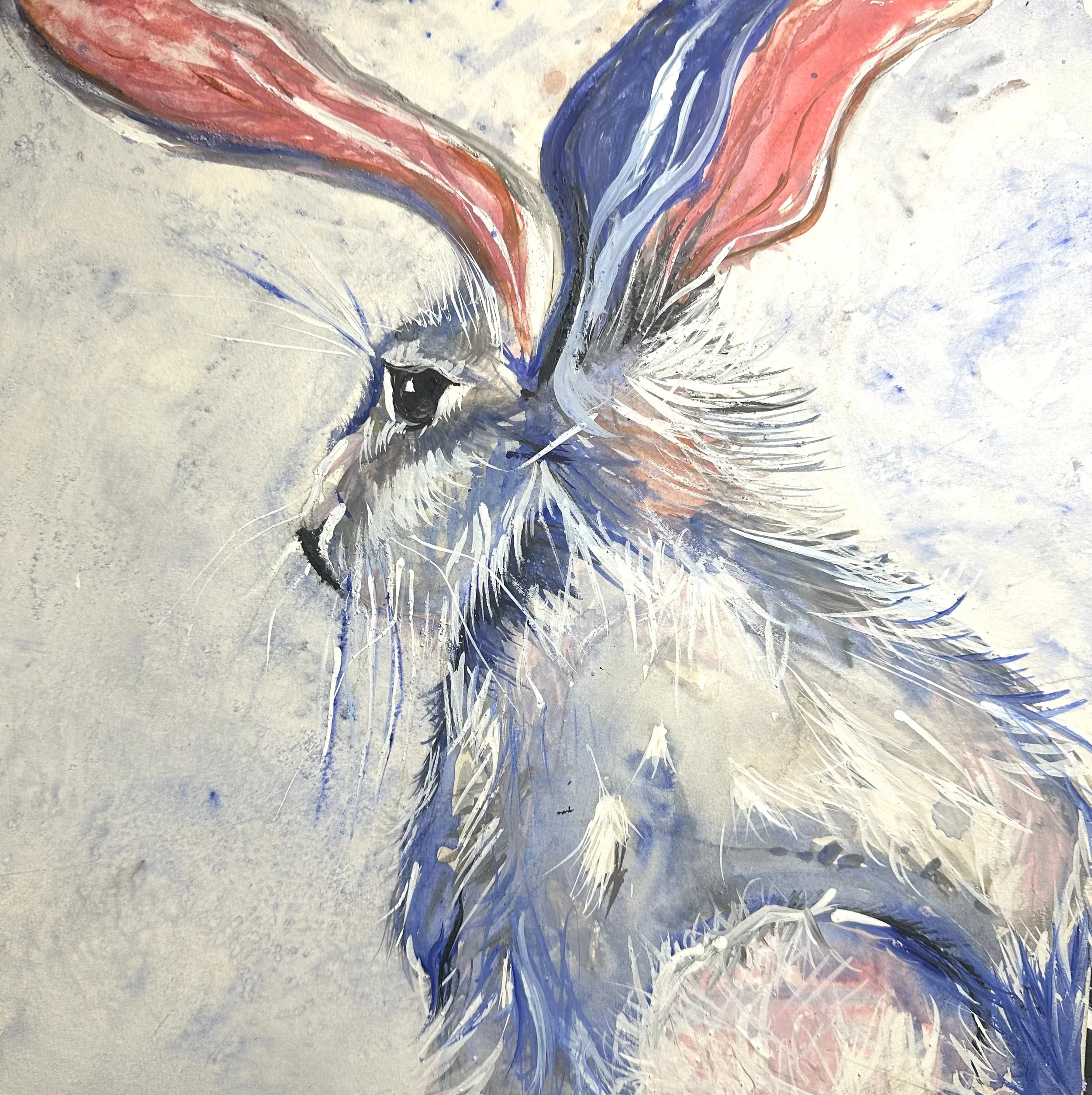 Rabbits appear frequently in my art. They are not symbols of whimsy, but of sensitivity, vigilance, fragility, and resilience. They are self-portraits. Through them, I explore pause, protection, and the quiet intelligence required to navigate complex worlds.